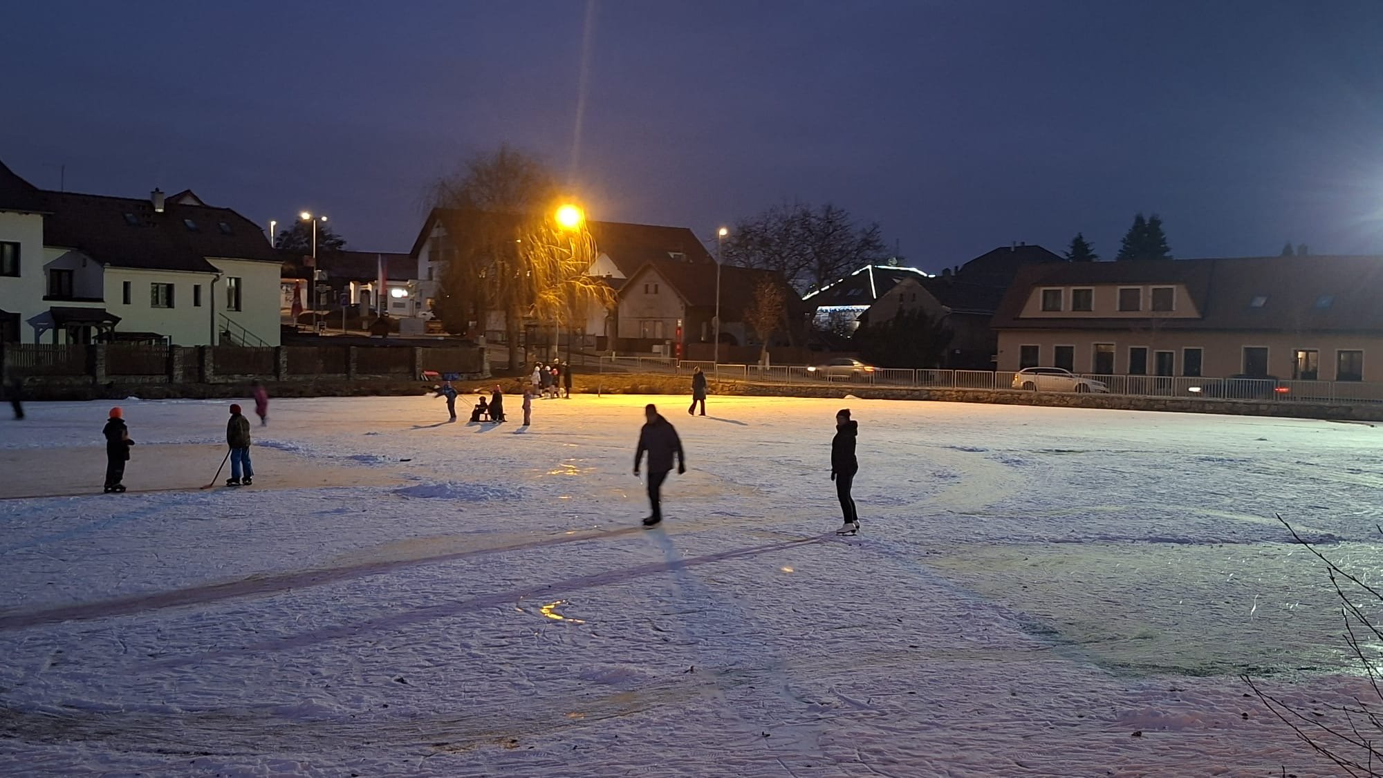 Městská část zajistila osvětlení části Návesního rybníka, aby si všichni milovníci zimních radovánek mohli užít bruslení i v podvečerních hodinách.