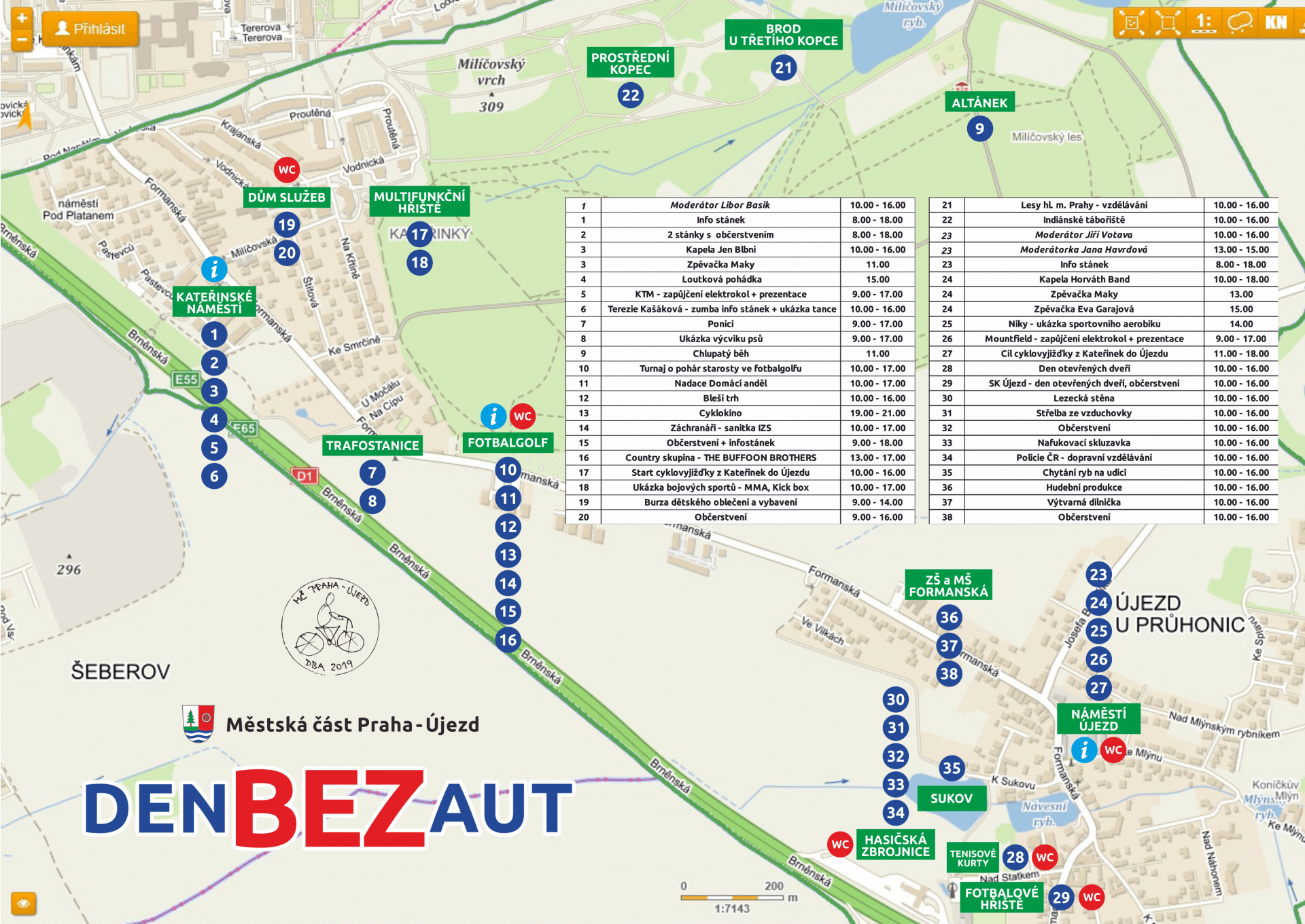 Na celém území městské části se budou konat kulturní a sportovní akce pro děti i dospělé. Svou činnost představí příspěvkové organizace a spolky sídlící v městské části. Chybět nebude ani edukativní program zaměřený na první pomoc, dopravní bezpečnost či ekologii. Součástí akce bude i podpora projektu nadace Domácí anděl „Děti se léčí doma“.