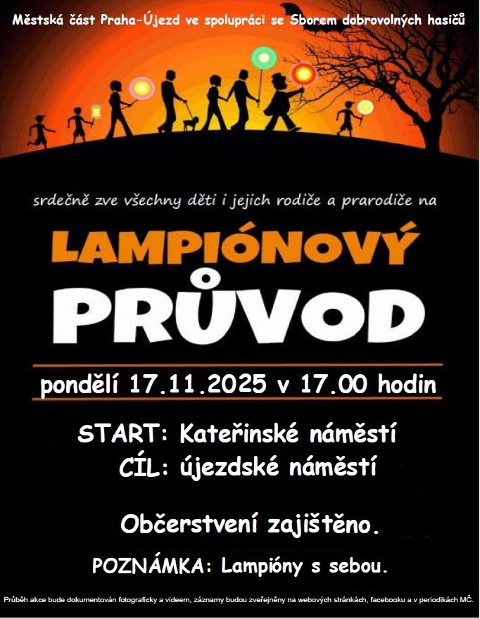 V  pondělí 17. listopadu 2025 v 17.00 hodin vyjde z Kateřinského náměstí na náměstí v Újezdu lampionový průvod.