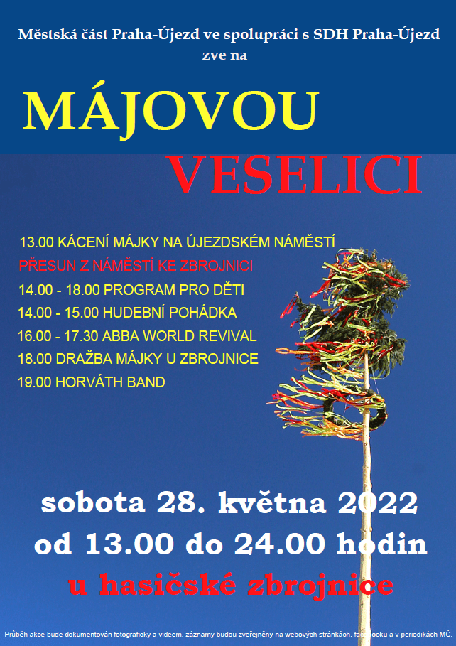 Tradičně, vždy poslední sobotu v květnu, pořádáme Májovou veselici spojenou s pokácením a dražbou májky. Letos akce začne v 13.00 hodin, a to pokácením májky na újezdském náměstí. Program se poté přesune do prostoru za hasičskou zbrojnicí, kde bude pokračovat až do večerních hodin. Součástí programu bude například interaktivní program Míši Dolinové „Májové Sněhánky“ nebo vystoupení hudební skupiny ABBA WORLD Revival.