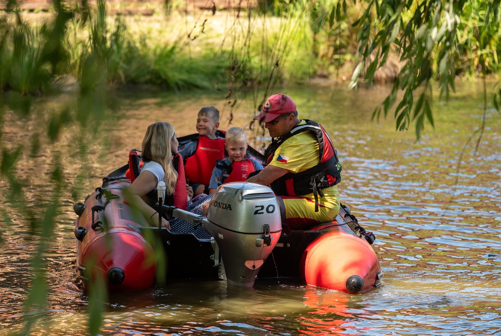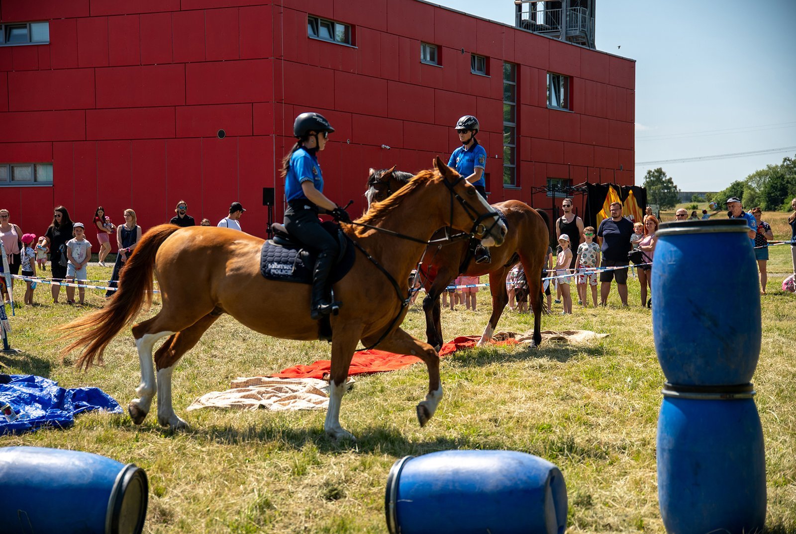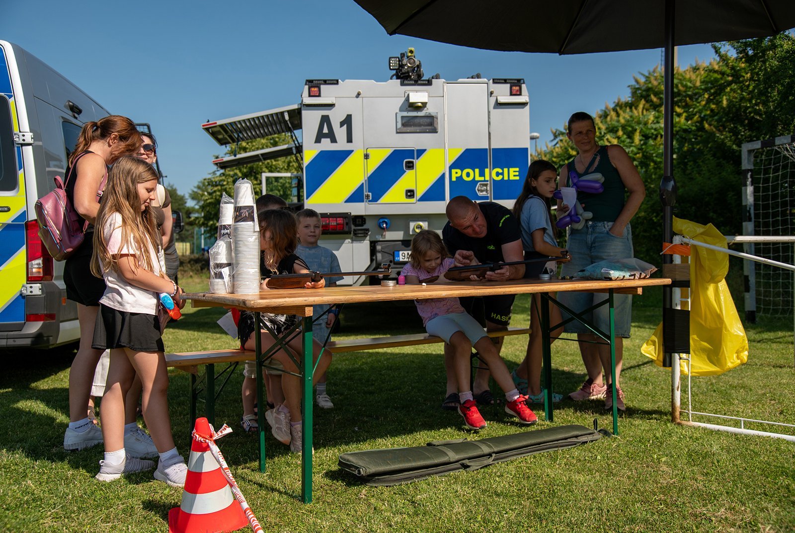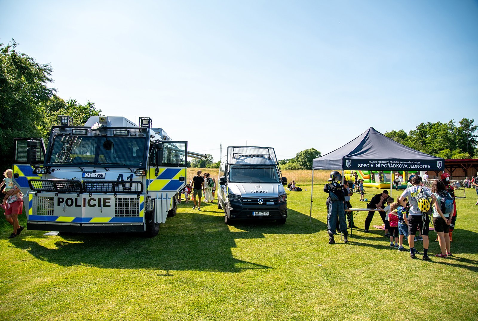 Velkým zpestřením dne byl několikanásobný přelet vrtulníku Policie ČR nad prostorem oslav, který zaujal malé i velké návštěvníky.
